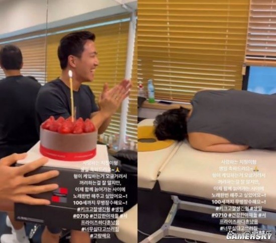 孔刘的健身教练昨日在Ins限动分享一段影片,孔刘原本躺在床上进行运动复健,下一秒工作人员拿着蛋糕唱起生日快乐歌,他吓得直接从床上弹起,同时飙出一句清晰有力的「啊西!」。