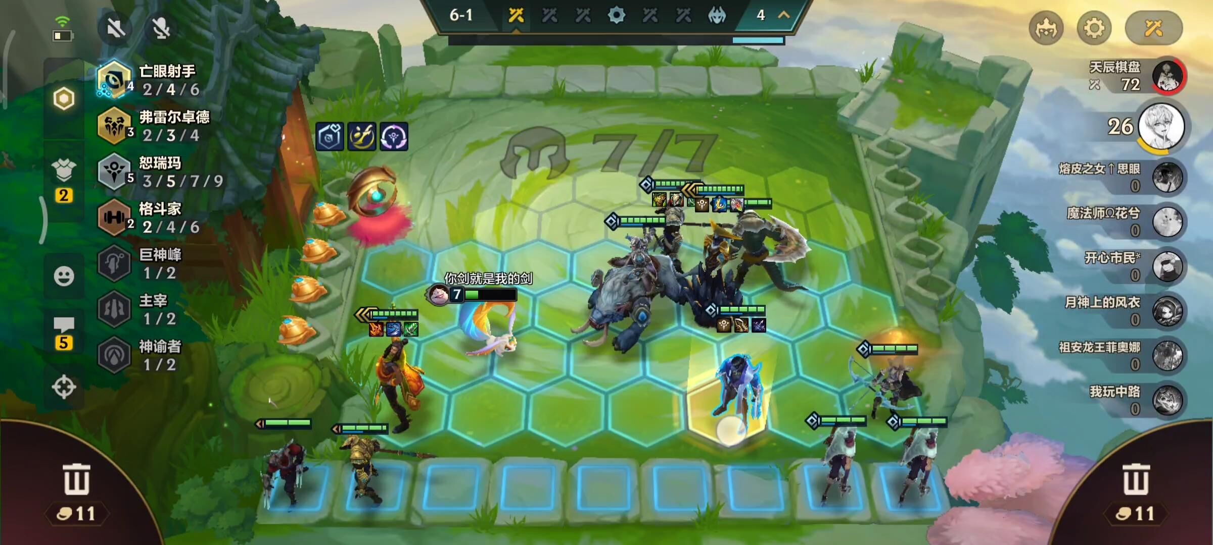 羁绊为:4盲眼射手、3恕瑞玛、2格斗家、3弗雷尔卓德
