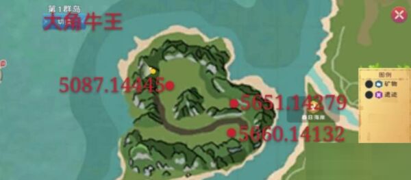 2、大角牛王在春日海岸旁边的小岛有三个刷新点,具体的左边是(5087,14445),(5651,14279),(5660,14132)。
