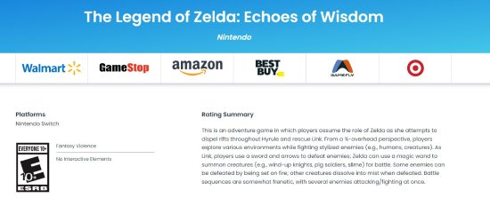 《塞尔达传说:智慧的再现》现已通过了ESRB评级,确认为“E”级,适合10岁以上玩家,没有微交易元素。