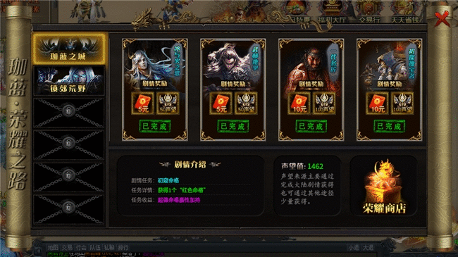 武侠情玩家一定要体验“武林绝学”剧情,在幽闭通道地图击杀怪物,可获得对应的武林绝学提交给NPC 可完成剧情,“太极拳”材料由武当弟子爆出,“易筋经”材料由少林弟子爆出,“逍遥游”材料由道遥派弟子爆出。另外,地图中的小boss“张三丰、逍遥子、扫地僧”还有自己的特殊专属装备哦!剧情奖励分别为“烈火伤害+5%、攻杀伤害+5%、刺杀伤害+5%”,全部提交获得“对怪切割+222、切割倍数+10%、真实充值、声望”,极爽体验武林江湖……以上剧情只是前三大陆的部分内容,本服剧情玩法内容极其丰富,更多剧情线值得喜欢探索的玩家自己前往挖掘!绝对的丰富沉浸。
