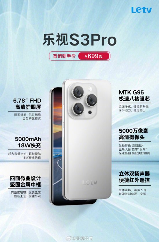 今日,乐视S3Pro全新产品正式开售,其起售价仅为699元。