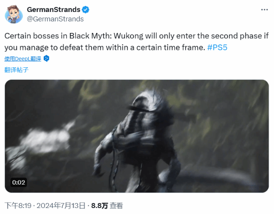 距离游戏科学巨作《黑神话:悟空》的正式发售日期仅剩一个多月的时间,无数玩家都在翘首以盼等待它的来临。据外媒dualshockers报道,近日有博主提到了《黑神话:悟空》Boss战的一个非常独特的机制,即某些Boss必须在特定时间被打到特定血量后才会进入第二阶段,消息传出后,引发众多玩家热议,包括魂游社区里的玩家。
