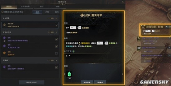 当萌新通过这一系列增益,到达了1490的道具门槛后,游戏便会通过高亮的“崛起任务”系统,带领玩家完成混沌地牢、星辰护卫等游戏的日常玩法,直接一步到位,带萌新快速体验第一梯队玩家们的游戏内容。