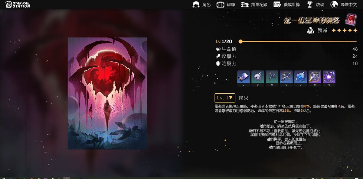 五星光锥,首选记一位星神的陨落。虎克的技能都是输出的,而且光锥叠加到4层并不难,只是需要点时间,并且破盾后伤害提高。