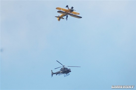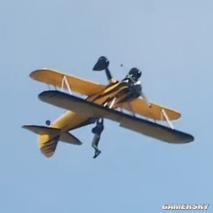 这段剧情大概是他与扮演反派加布里埃尔的埃塞 · 莫拉莱斯经过系列动作戏后吊在飞机上,一起飞上了天空。