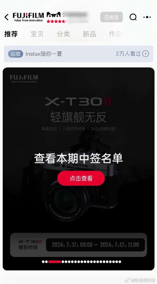 在电商平台上,富士相机成为炙手可热的商品。热门机型如X-T30、X-T5等供不应求,有商家通过抽签形式分配有限的购买名额,这些抽中的幸运儿可以在二手市场上以高出原价数千元的价格轻松转手。富士相机俨然成为当代的“电子茅台”。