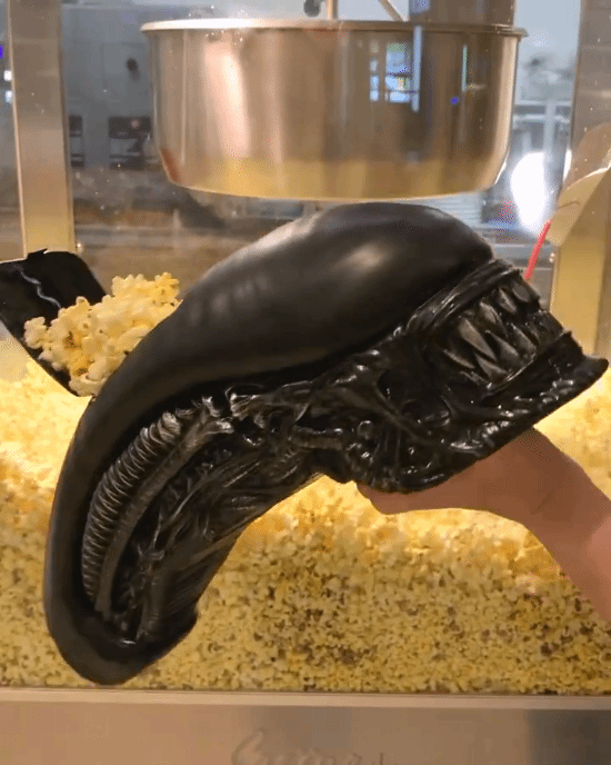 《异形:夺命舰》将于8月份上映,据Cinemark Theatres消息,国外已有厂商做出了相关爆米花桶周边。用户只需将异形的头掀开,就能把爆米花装进去。吃着这样的爆米花,看这部新片,会是怎样的感觉呢?