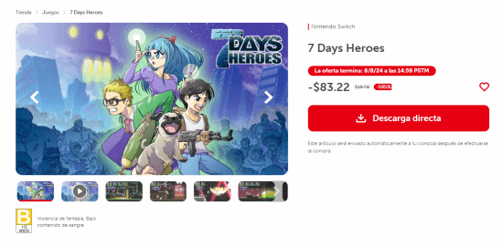 日前,在墨西哥任天堂eShop上,一款名为《7 Days Heroes》的复古风格的2D平台游戏推出了高达595%的折扣,详情页显示折后竟然还“倒贴”83.22墨西哥比索(约33元)。