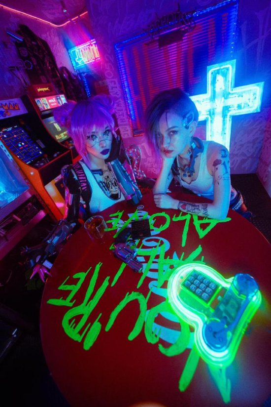 今日为大家带来的是日本两位小姐姐jasminex21与Adele_Lavend在一起COS的《赛博朋克2077》角色丽塔与朱迪。可以看到,在绚幻的霓虹灯下,二位小姐姐的穿搭基本上比较完美的还原了游戏中的角色,一起来欣赏下~