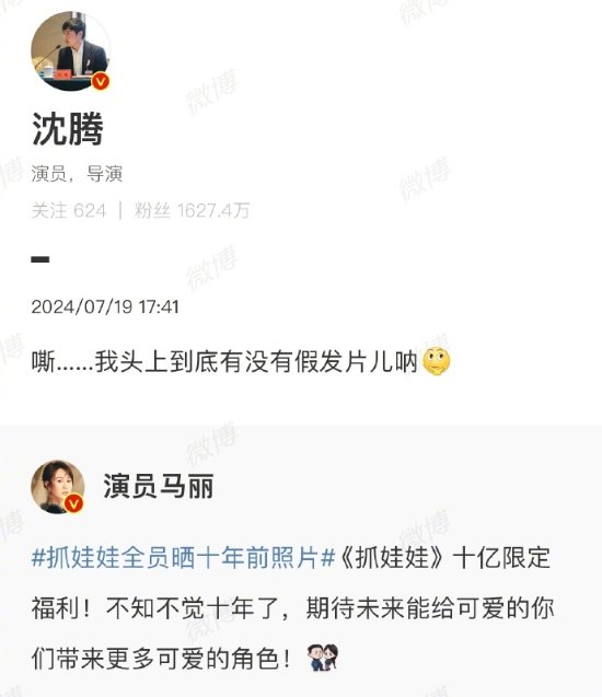 《抓娃娃》票房破10亿,马丽发和沈腾10年前合照,两位的穿搭比钢兰夫妇的造型更炸裂,随后,沈腾转发:“嘶……我头上到底有没有假发片儿呐。”