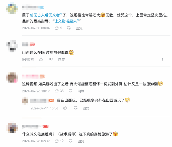 不少网友在视频下方留言道:“山西这么多吗 过年放假逛逛”“这下赛博旅游了”“圣地巡礼”等等。