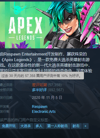 《APEX》热度暴跌现退坑潮 近期差评力压三国杀