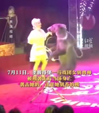 近日,俄罗斯圣彼得堡,一女子被熊袭击后当场身亡。