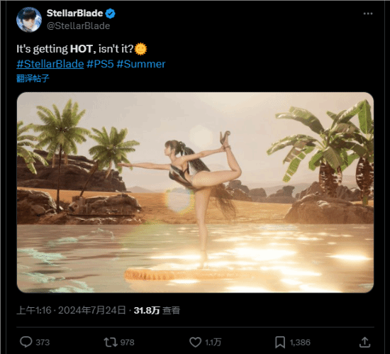 今日凌晨,Shift Up在推特上发布了伊芙的泳装照片。照片中,伊芙身穿连体泳衣正在海滩上凹出高难度的瑜伽造型。并附文:越来越热(Hot)了,不是吗?
