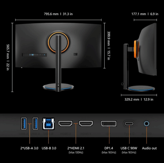 联合创新34G1R显示器详细配置如下: