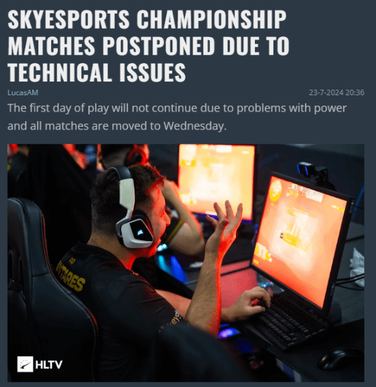 今日《CS2》线下比赛SKYESPORTS CHAMPIONSHIP在印度举行,The MongolZ、ENCE、Eternal Fire等战队参加了该锦标赛。但由于电力问题,首日比赛过程被连续中断,最终赛事官方宣布所有比赛将移至周三进行。