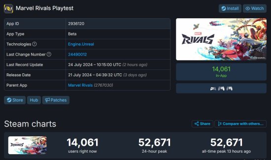 《漫威争锋》封测玩家峰值超5万人:倍杀《星鸣特攻》