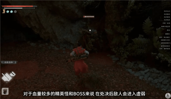 视频中我们可以看到,本作没有体力限制,取而代之的是被称为“混元气”的系统(下文称为“黄条”)。类似于《只狼》中的“架势条”,将敌人的黄条清空后再使用轻攻击即可进行处决。对于一次处决无法击杀的精英怪和BOSS来说,其在被处决后会陷入虚弱状态,防御力降低并几乎无法行动,玩家可以趁机造成大量伤害。