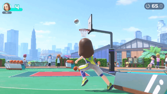 作为今年目前为止最大的一次更新,该模式已于7月10日在游戏中免费上线。玩家可以通过动作控制,在规定时间内尽可能多地投篮,参与单人的三分挑战赛。允许最多四名玩家本地进行五连胜对战或三分球大赛,此外,你还可以在本地或在线上进行2V2的篮球比赛,进行运球、传球和得分。