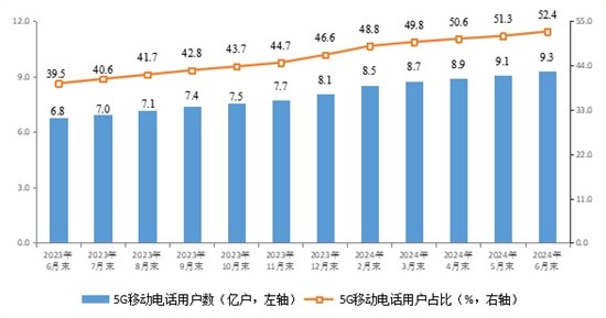 根据最新公布的工信部报告,2024年上半年,我国移动电话用户总数达到17.77亿户,其中5G用户占比达到了52.4%。