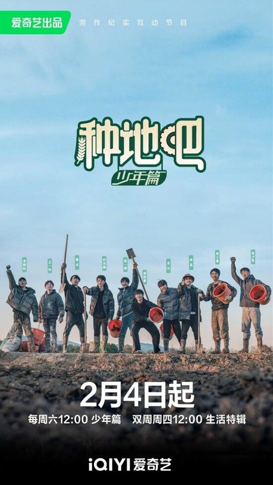 《种地吧》是由爱奇艺、蓝天下传媒出品的一档劳作纪实互动节目,第一季于2023年2月播出,节目中的十个少年成为组合“十个勤天”,其粉丝被称为“禾伙人”。