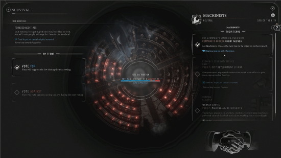 在游戏中,人们分成了不同的社区。这些社区的理念各不相同,而且往往会互相冲突,玩家在治理城市是必须将其考虑在内。而随着时间推移,这些社区还会形成风格不同的派别,他们的想法会影响城市的发展方向,而玩家则需要平衡不同派系之间的利益关系,做出让所有人(至少是一部分)满意的决定。