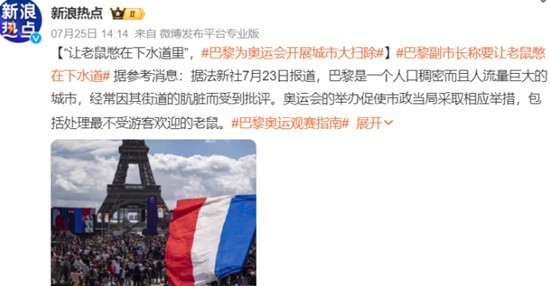 据新浪热点报道,巴黎是一个人口稠密而且人流量巨大的城市,经常因其街道的肮脏而受到批评。奥运会的举办促使市政当局采取相应举措,包括处理最不受游客欢迎的老鼠。