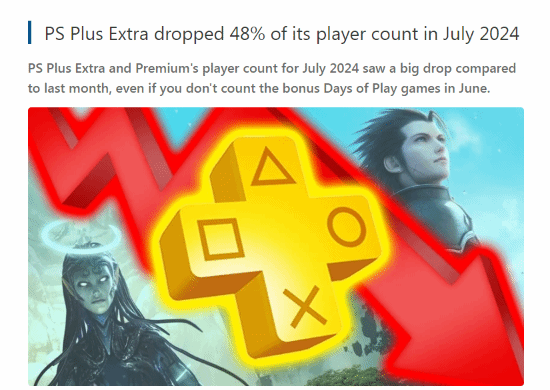 第三方True Trophies数据显示,7月份的PS+2/3档订阅人数与6月相比下降了48.67%。