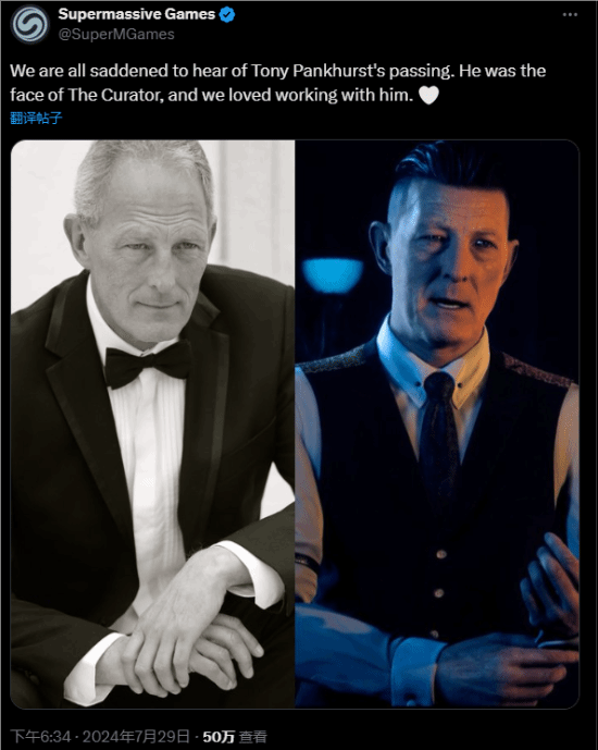 实际上他早在5月就已离世,但开发商Supermassive近日才刚刚在社交平台公布了他离世的消息。工作室发布的悼文称:“得知Tony Pankhurst去世的消息后,我们都感到很难过。他是‘管理者’的代言人,我们都十分喜欢和他一起工作。”