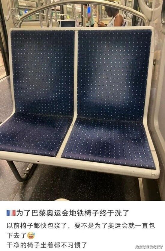 有网友在社交媒体发文称,“为了巴黎奥运会,地铁椅子终于洗了。以前椅子都快包浆了,要不是为了奥运会,就一直包下去了,干净的椅子坐着都不习惯了。”