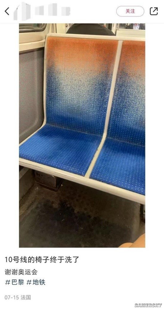 多位IP地址为法国的网友发文称“不太习惯”“真的感谢奥运,坐了好几次干净座位甚至新车”“它原来是这个颜色啊?一直都以为是黑黑的。”