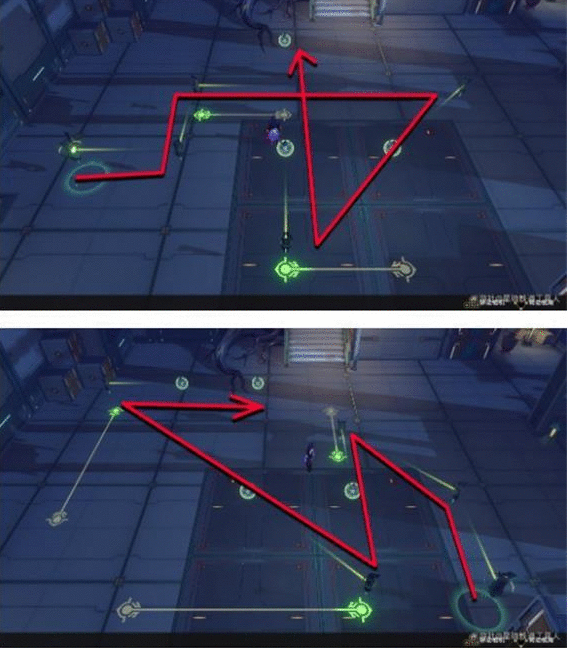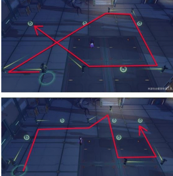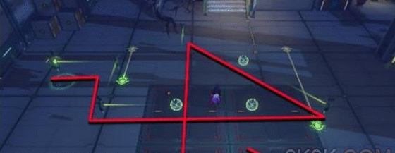 (2)按以下三张图的路线摆放承接器即可,拿完宝箱之后再次对话老师傅即可开始下一关,和大矿区的矿车任务类似。
