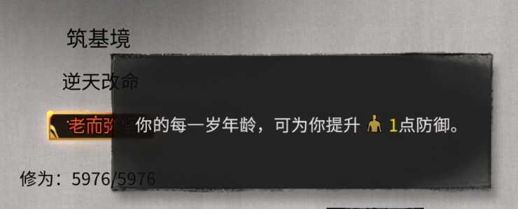 老而弥坚。你的每一岁年龄,可为你提升1点防御。