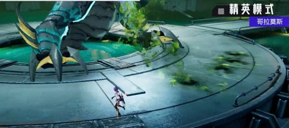 4、最危险的就是它的蓄力大招,当哥拉莫斯摆造出如下图动作时,这一刻它就是在等待蓄力充足后放大招,而此刻玩家就必须全力打断它,不然将会全屏秒杀。