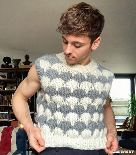 在其他运动员凭借着在赛场上的表现获取流量时。英国的跳水王子汤姆·戴利(Tom Daley)却因为在赛场织毛衣而声名大噪。