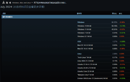 据了解,Windows 11目前占据Steam上所有Windows用户份额约45.81%,该值环比下降了0.82个点。Windows 10则上涨0.74点,份额占比达到50.16%。当然,与其他操作系统相比,微软Windows依然是统治级的,约96%的Steam用户使用的该系统,约2%为Linux用户,1.37%使用Mac系统。