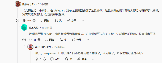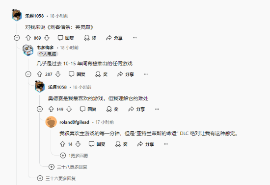 育碧游戏《刺客信条:英灵殿》获得了最高赞,很多玩家表示在前几个小时还很有激情,但当推进主线长达近20小时后已经麻木,并最终选择放弃。