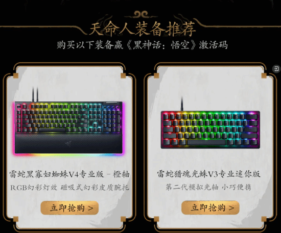 雷蛇×《黑神话》活动开启:买指定游戏外设抢激活码!