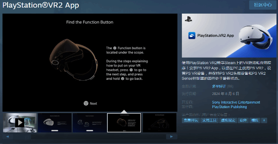 《PlayStationVR2 App》现已于Steam平台推出,目前评价为“多半好评”。该应用允许玩家使用PlayStation VR2游玩Steam游戏。