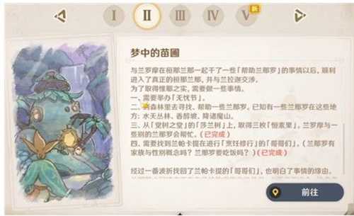 其实【与兰那罗一同冒险】就是需要玩家完成,【森林书】-【书梦中的苗圃】当中的四个任务后就可以完成了,(PS:打开背包-任务道具-阅读森林书即可查看)