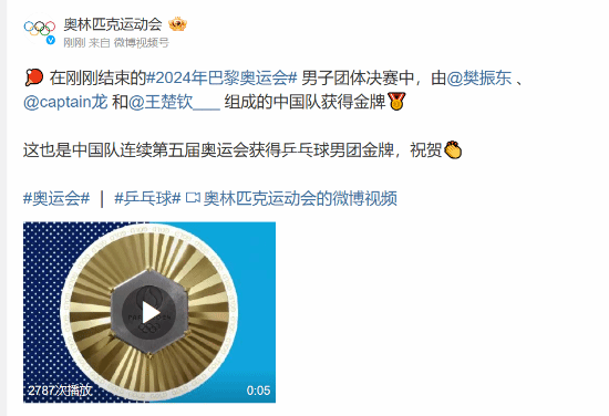 在刚刚结束的巴黎奥运会乒乓球男子团体赛决赛中,马龙、王楚钦、樊振东三人搭档以3:0的比分战胜瑞典队成功夺得金牌!