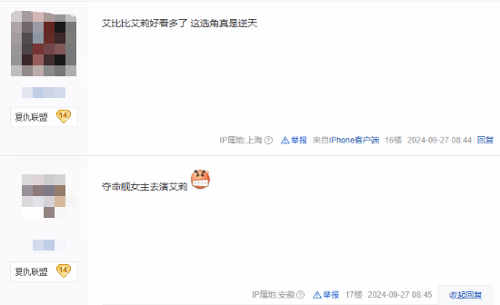 网友们纷纷表示艾比的造型比艾莉要好看的多,有网友说道:“要是能把选艾莉女朋友演员的功夫放在选艾莉上就好了。”“艾比比艾莉好看多了,这选角真是逆天。”“《异形:夺命舰》女主快去演艾莉!”“(艾莉)女朋友真好看。”也有网友建议:“多点丧尸镜头吧。第一季跑者循声者巨无霸这些出场太少了。”