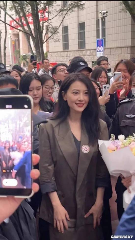 10月13日,45岁的高圆圆回母校中国劳动关系学院参加75周年校庆,现场人气超高。