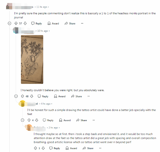 近日,Reddit上有国外玩家分享了自己的《黑神话》无头僧灵吉纹身,图案来自游戏中的影神图。