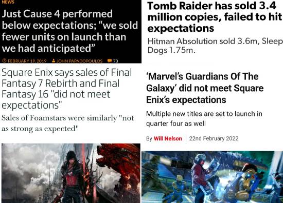 图上的新闻:《正当防卫4》、《古墓丽影》、《银河护卫队》、《FF7RB》与《FF16》等未达到SE销售预期