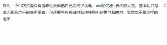 还有玩家评价Chovy的打法太没有侵略性了,缺少能在关键时刻逆转局势的勇气和魄力。
