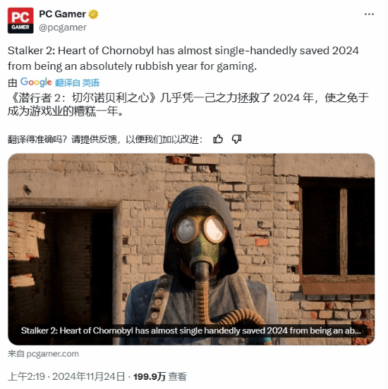 外媒PC Gamer在11月24日发布了一篇题为“《潜行者2:切尔诺贝利之心》几乎单枪匹马地拯救了2024年,免于成为糟糕的一年”的文章。然而,这一标题引发了部分玩家的不满,认为其忽略了其他许多成功的游戏作品。