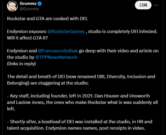 今日,前暴雪制作人,知名反“DEI”先锋@Grummz爆料,RockstarGames工作室现已被“觉醒文化”完全渗透,有可能会影响《GTA6》的开发。