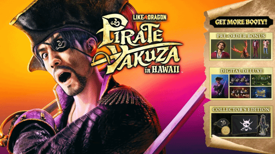 预购游戏即可获得包含春日一番以及小龙虾南希在内的 Ichiban Pirate Crew Set套装包。春日一番以及小龙虾南希将陪伴您的夏威夷海盗之旅。